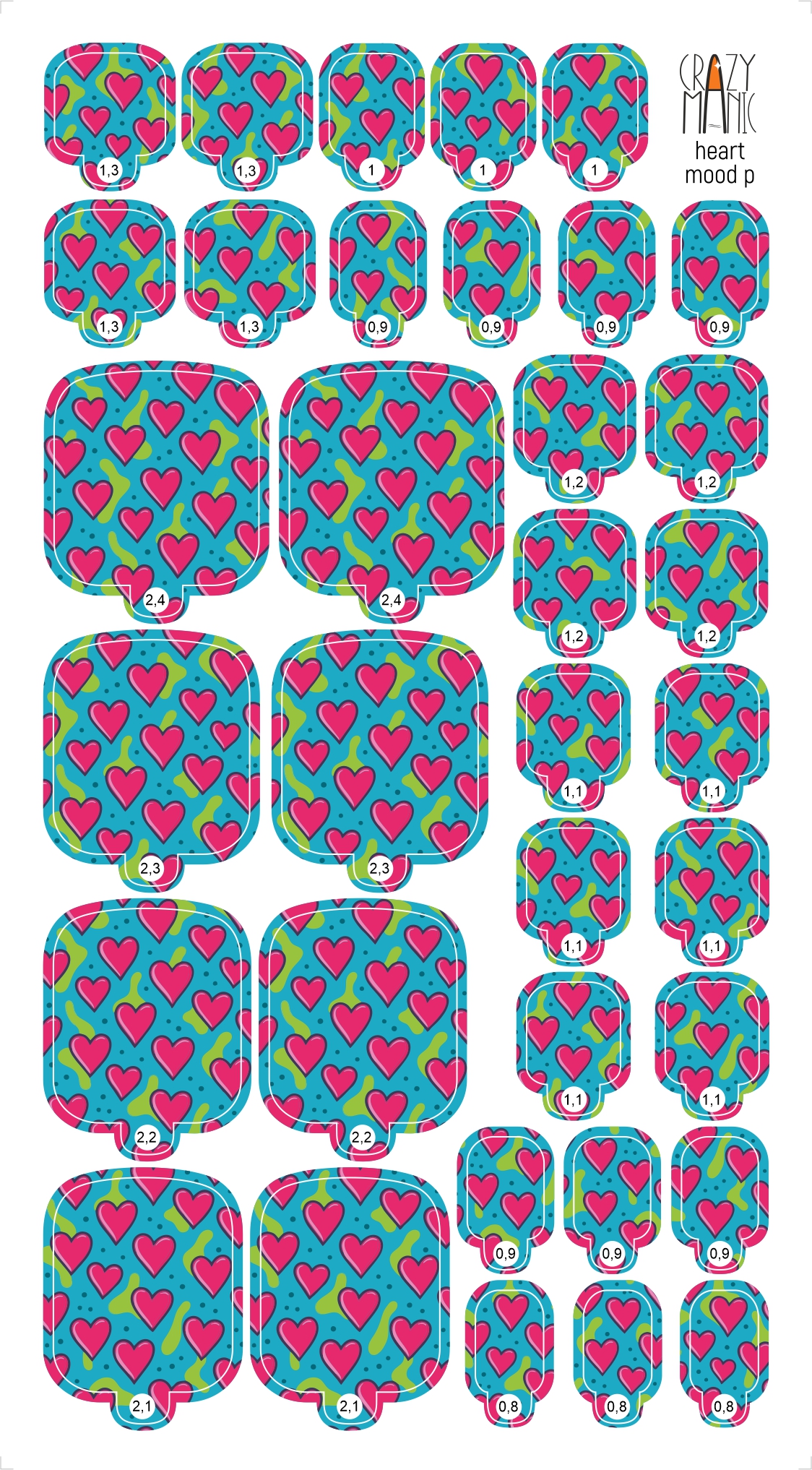 Crazy Manic Плёнки для ногтей для педикюра heart mood p