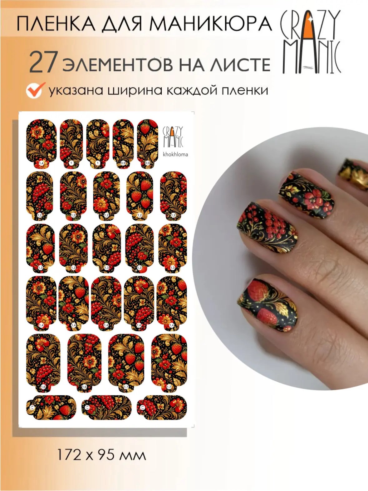 Crazy Manic Плёнки для ногтей для маникюра khokhloma