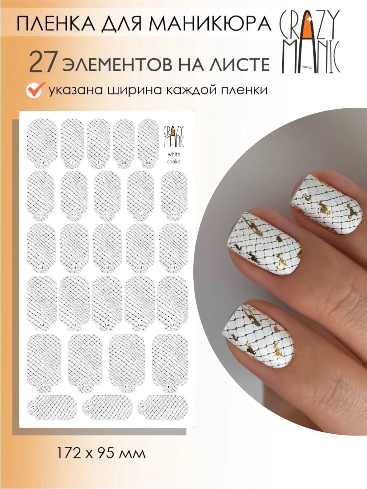 Crazy Manic Плёнки для ногтей для маникюра White snake