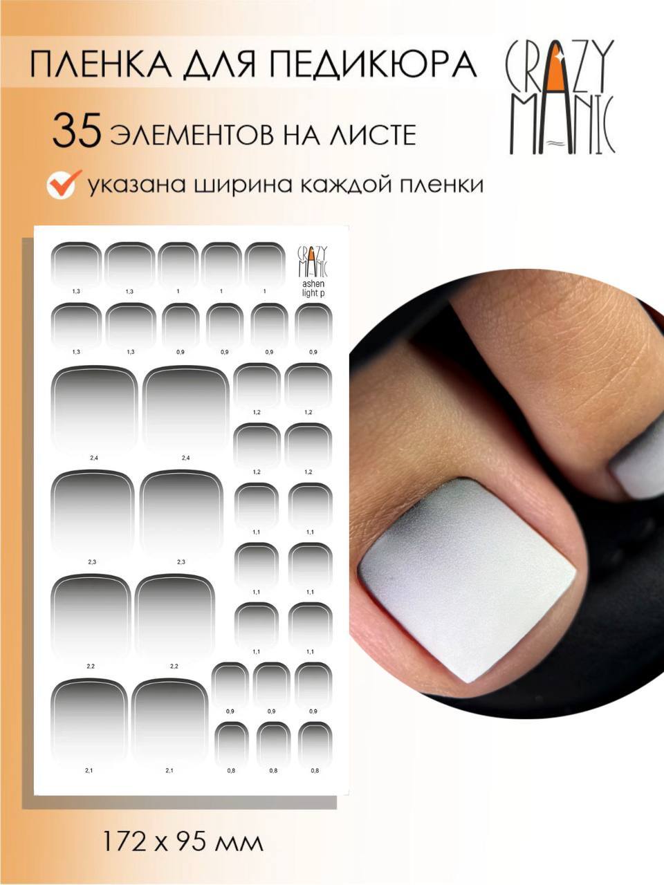 Crazy Manic Плёнки для ногтей для педикюра ashen light p
