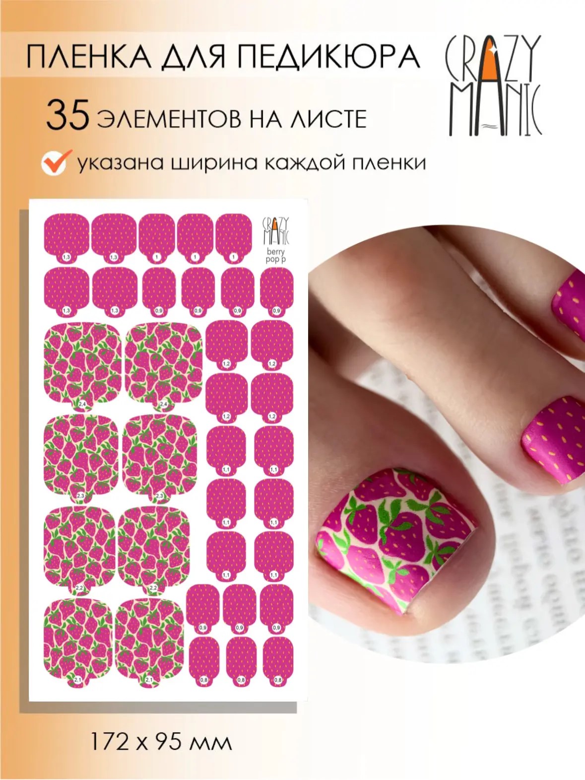 Crazy Manic Плёнки для ногтей для педикюра Berry Pop p