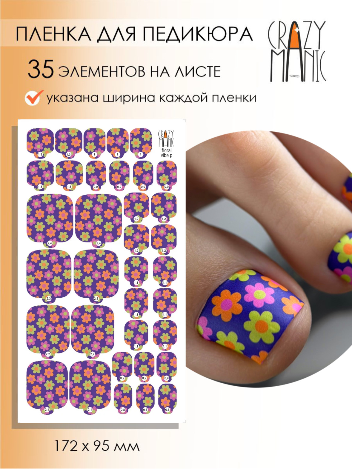 Crazy Manic Плёнки для ногтей для педикюра floral vibe p