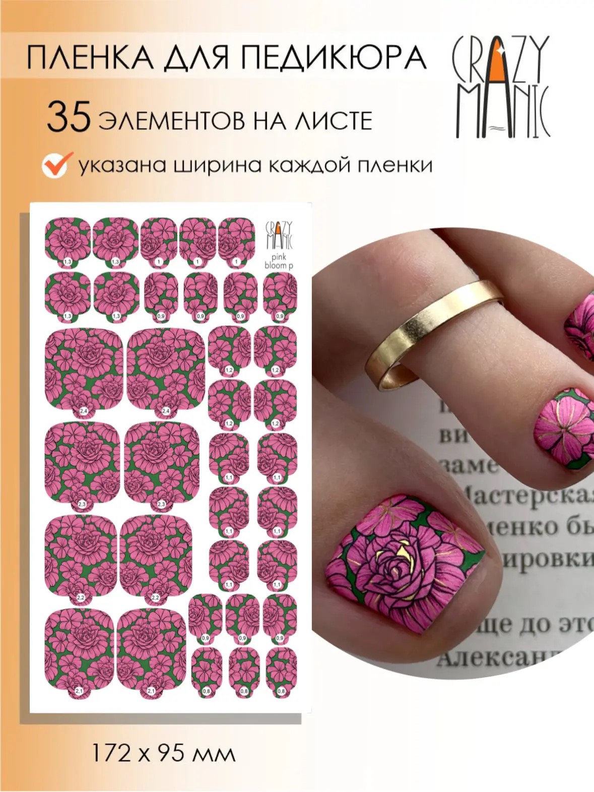 Crazy Manic Плёнки для ногтей для педикюра Pink Bloom p