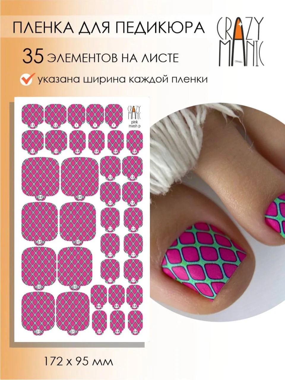 Crazy Manic Плёнки для ногтей для педикюра pink mesh p